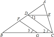 (1)如图,DE∥BC,∠1=∠3,请说明FG∥DC;