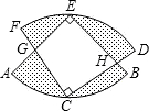 如图,两个半径相等的直角扇形的圆心分别在对方的圆弧上,半径AE、CF交于点G,半径BE、CD交于点H,且点C是
