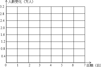 (2)请判断7天内游客人数最多的是哪天?最少的是哪天?它们相差多少万人?