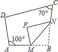 如图,四边形ABCD中,点M,N分别在AB,BC上,将△BMN沿MN翻折,得△FMN,若MF∥AD,FN∥DC,则∠B=________°.