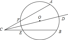 如图,⊙O的两条弦AF、BE的延长线交于C点,∠ACB的平分线CD过点O,请直接写出图中一对相等的线段:________.