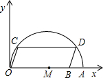 如图,在平面直角坐标系中,点A的坐标是(10,0),点B的坐标为(8,0),点C、D在以OA为直径的半圆M上,且四边形OCDB是平行四边形,求点C的坐标.