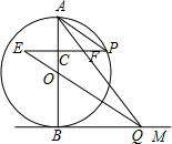 垂足为C;点Q在射线BM上移动(点M在点B的右边),且在移动过程中保持OQ∥AP.
