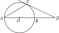 如图,⊙O的直径AB与弦AC的夹角是30°,过点C作⊙O的切线交AB的延长线于点D,若OD=24cm,则⊙O的直径AB的长为________cm.