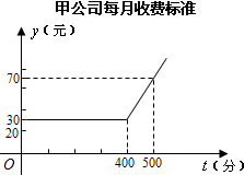 有甲、乙两家通讯公司,甲公司每月通话(不区分通话地点)的收费标准如图所示;乙公司每月通话的收费如表所示.