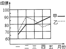 为了从甲、乙两名学生中选拔一人参加全国数学竞赛,李老师每个月对他们的竞赛成绩进行一次测验,下图是两人赛前5次测验成绩的折线统计图.
