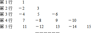 一列数:1,-2,3,-4,5,-6,7,…将这列数排成如上所示的形式:按照上述规律排下去,那么第10行从左边数第5个数等于________.