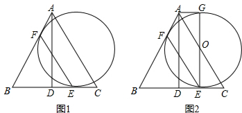 (2)如图2,过E作BC的垂线,交圆于G,连接AG,判断四边形ADEG的形状,并说明理由;