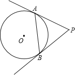 如图,PA,PB分别为⊙O的切线,切点分别为A、B,∠P=60°,PA=10cm,那么AB的长为________cm.