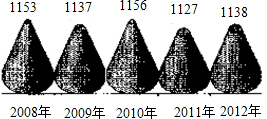 重庆市2008-2012年全市粮食产量统计结果如图所示(单位:万吨),则这五年粮食产量的中位数是________.