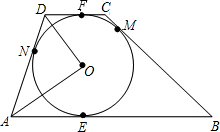 如图,⊙O是梯形ABCD的内切圆,AB∥DC,E、M、F、N分别是边AB、BC、CD、DA上的切点.