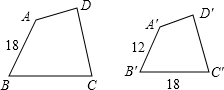 如图,四边形ABCD∽四边形A′B′C′D′,根据图中的数据可得边BC的长度是________,四边形ABCD与四边形A′B′C′D′的面积比是________.