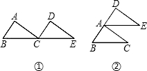剪两个全等的三角形,把这两个三角形重叠在一起放在桌面上,实际操作试一试,保持其中一个三角形不动,怎样移动另一个三角形,能够得到图中的两个图形?