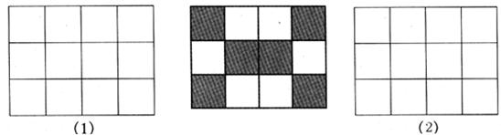 如图,在4×3的网格上,由个数相同的白色方块与黑色方块组成一幅图案,请仿照此图案,在下列网格中分别设计出符合要求的图案(注:①不得与原图案相同;②黑、白方块的个数要相同)