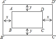 如图,矩形ABCD的花坛宽AB=20米,长AD=30米.现计划在该花坛四周修筑小路,使小路四周所围成的矩形A′B′C′D′与矩形ABCD相似,并且相对两条小路的宽相等,试问小路的宽x与y的比值是多少,说出你的理由.