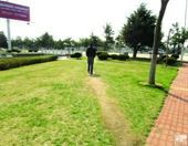 如图,为抄近路践踏草坪是一种不文明的现象,请你用数学知识解释出这一现象的原因________.
