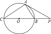 如图:PA是⊙O的切线,A为切点,PBC是过圆心的割线,PA=10,PB=5,则tan∠PAB的值为________.