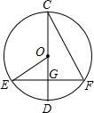 如图,⊙O的直径CD过弦EF的中点G,∠EOD=40°,求∠DCF的度数.