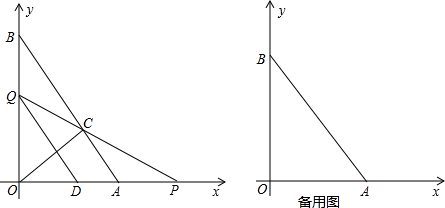 如图,已知:点A(3,0),B(0,4)分别是x轴,y轴上的点,动点P和Q分别从原点出发,沿x轴,y轴正方向运动,速度分别是2个单位长度/秒和1单位长度/秒,设运动时间为t秒,当1.5<t<4时,连接PQ交直线AB于点C,过点Q作QD∥BA交x轴正方向于点D.