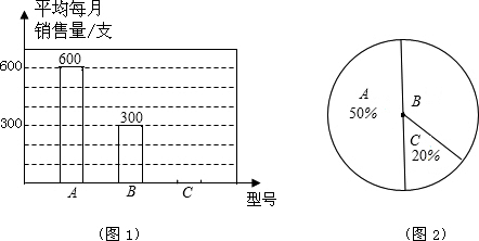 (1)销售B型号钢笔平均每月获得的利润占总利润的______%,A型号钢笔每支的利润是______,B型号钢笔每支的利润是______,C种型号钢笔平均每月的销售量是______支,并将图1补充完整;