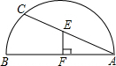 如图,半圆的直径AB=3,点C在半圆上,点E在AC上,且AE=BC,EF⊥AB于点F.若设BC=x,EF=y,则y关于x的函数关系式为y=________.(0<x<3).