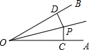 如图,P在∠AOB的内部,PC⊥AO于C,PD⊥OB于D,PD=PC,当∠AOP=x度,∠BOP=(110-4x)度时,∠AOP=________ 度.