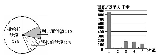 (2)补全下面的表示五大沙漠面积的条形统计图和扇形统计图(百分比精确到1%).