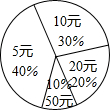 在资阳市团委发起的“暖冬行动”中,某班50名同学响应号召,纷纷捐出零花钱.若不同捐款金额的捐款人数百分比统计结果如图所示,则该班同学平均每人捐款________元.