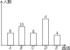 为了解中学生获取资讯的主要渠道,设置“A:报纸,B:电视,C:网络,D:身边的人,E:其他”五个选项(五项中必选且只能选一项)的调查问卷,先随机抽取50名中学生进行该问卷调查,根据调查的结果绘制条形图如图所示,该调查的方式是,图中的a的值是