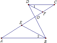 已知:∠A=∠C,DF平分∠CDO,BE平分∠ABO,求证:∠1=∠2.