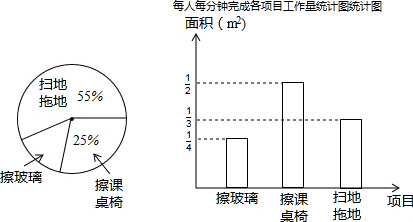 (1)从统计图中可知:擦玻璃的面积占总面积的百分比为______,每人每分钟擦课桌椅______m