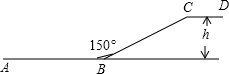 下图是某商场一楼与二楼之间的手扶电梯示意图,其中AB、CD分别表示一楼、二楼地面的水平线,∠ABC=150°,BC的长是8m,则乘电梯次点B到点C上升的高度h是________m.