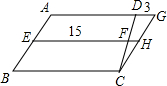 已知:梯形ABCD,G为AD延长线上一点,EF为梯形ABCD中位线,其延长线交CG于H,AG=BC,EF=15cm,DG=3cm.求AD和BC的长.