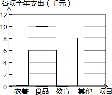 如图是某户人家全年各项支出的条形统计图,从图中可知这户人家的教育支出占全年总开支的百分数是________.