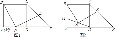 (1)如图1,点M、A重合,E为CF的中点,试探究BN与NE的位置关系及