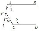 如图,已知AB∥CD,∠1=100°,∠2=120°,则∠α=________度.