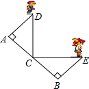 如图,点C是路段AB的中点,小明和小红两人从C同时出发,以相同的速度分别沿两条直线行走,并同时到达D,E两地,并且DA⊥AB于A,EB⊥AB于B.此时小明到路段AB的距离是50米,则小红到路段AB的距离是________米.