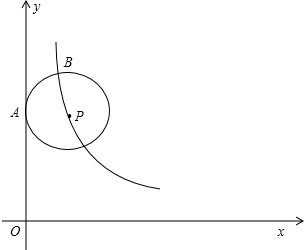 ,以P为圆心的圆保持与y轴相切于点A,与双曲线交于点B,点B在点P上方.