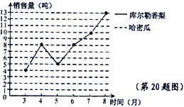 某瓜果销售公司去年3月至8月销售库尔勒香梨,哈密瓜的情况见下表: