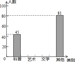 阅读对人成长的影响是很大的、希望中学共有1500名学生,为了了解学生课外阅读的情况,就“你最喜欢的图书类别”(只选一项)随机调查了部分学生,并将调查结果统计后绘制成如下统计表和条形统计图.请你根据统