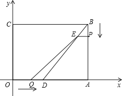 (2)现有两个动点P、Q分别从点B和点O同时出发,其中点P以每秒1个单位的速度,沿BA向终点A移动;点Q以每秒1.25个单位的速度沿OA向终点A移动.过点P作PE∥OA交BD于点E,连接EQ.设动点运动时间为x秒.当点Q在0A(不包括点O、D、A)上移动时,设△EDQ的面积为y,求y与x的函数关系式,并写出自变量x的取值范围.