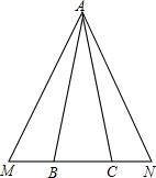 如图,△ABC中,AB=AC,点M、N分别在BC所在直线上,且AM=AN.