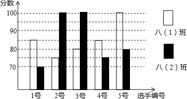为了让学生了解文明礼仪知识,增强文明意识,养成文明习惯,某中学开展“文明礼仪知识”竞赛,八(1)班、八(2)班各选出5名选手参加复赛,这5名选手的复赛成绩(得分取正整数,满分为100分)如图所示.