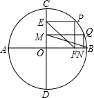 如图,AB、CD是⊙O的直径,且AB⊥CD,点P、Q为弧CB上的任意两点,作PE⊥CD,PF⊥AB,QM⊥CD,QN⊥AB,则线段EF、MN的大小关系为:EF________MN.(填“<”“>”“=”)
