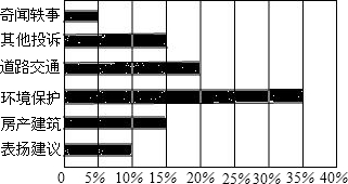 如图,是某晚报“百姓热线”一周内接到的热线电话的统计图,其中有关环境保护问题最多,共有70个,则有关道路交通问题的电话有________个.