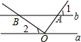 已知:如图,∠1=55°,∠2=35°,点O在直线a上,且OA⊥OB,则a与b的位置关系是________.