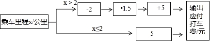 小明根据柸州市出租车的收费标准,制定了打车费计算的数值转换机示意图: