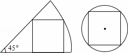 一张圆心角为45°的扇形纸板和圆形纸板按如图方式分别剪成一个正方形,边长都为1,则扇形和圆形纸板的面积比是--------( )