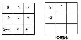 如图,在3×3的方阵图中,填写了一些数和代数式(其中每个代数式都表示一个数),使得每行的3个数、每列的3个数、斜对角的3个数之和均相等.