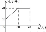 (本小题满分8分) 九年级(3)班数学兴趣小组经过市场调查整理出某种商品在第x天(1≤x≤90,且x为整数)的售价与销售量的相关信息如下.已知商品的进价为30元/件,设